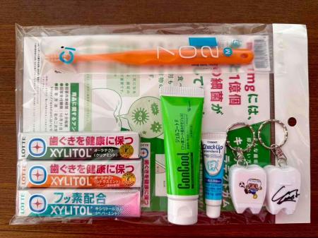 森勇人オリジナルグッズ、歯科グッズ(歯ブラシ、歯磨剤、オリジナルフロス)でプレゼントいたします。