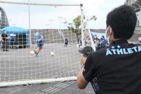 力の限りボールを蹴りこみ最速をめざそう。