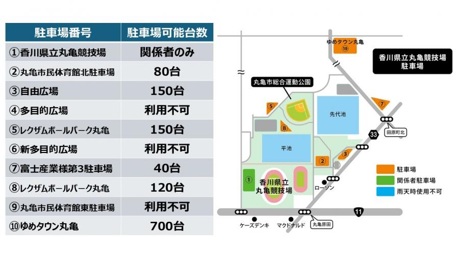 ・香川県立丸亀競技場まで徒歩20分ほどです。お早めのご来場にご協力ください。