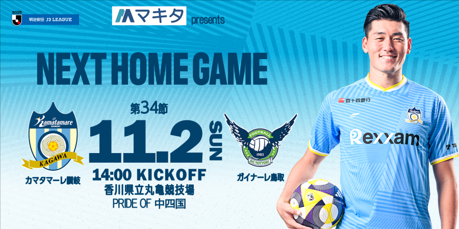 11月2日(日) 14:00KICKOFF 2025明治安田J3リーグ第34節 ガイナーレ鳥取戦 のチケット販売を開始いたしましたので、下記の通りお知らせいたします。