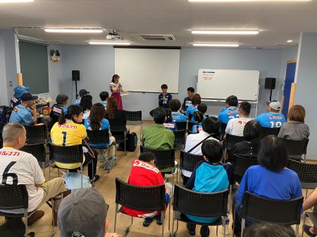 カマタマーレ讃岐のスクールコーチと、トップチームから後藤優介選手・石倉潤征選手・澤田将選手・松原快晟選手が参加。