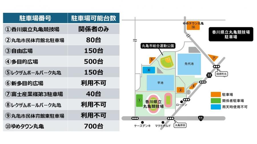 ・香川県立丸亀競技場まで徒歩20分ほどです。お早めのご来場にご協力ください。