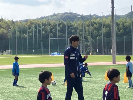 スクールコーチから「練習メニューを1つ考えてきてほしい」とお願いをすると「全部考えます!」と井林選手。サッカー教室を主体となって進めてくれました。