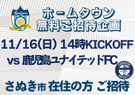 11月16日(日) 14:00KICKOFF 株式会社石垣presents2025明治安田J3リーグ第36節鹿児島ユナイテッドFC 戦 かがわスポーツ×ファンキッズDAY/さぬき市サンクスDAY のイベント情報をお知らせいたします。