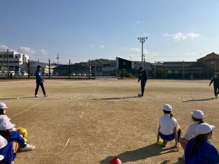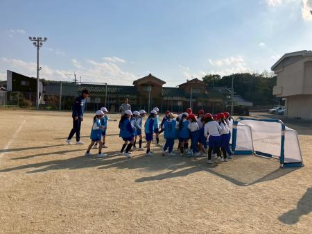 冷え込む季節となってきましたがこの日は快晴。青空の下、3年生の皆さんと一緒に元気いっぱいに走り、サッカーを楽しみました。