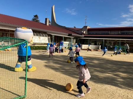 寒さに負けない元気な4歳5歳の33人の園児の皆さんと一緒に楽しくボールで遊びました。