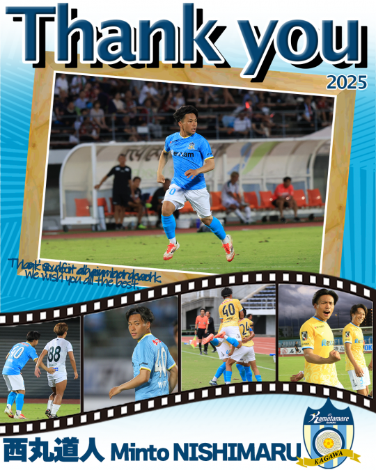 このたび、ベガルタ仙台より育成型期限付移籍にて加入していた西丸道人 選手の移籍期間が2025シーズンをもって終了となりましたのでお知らせいたします。
