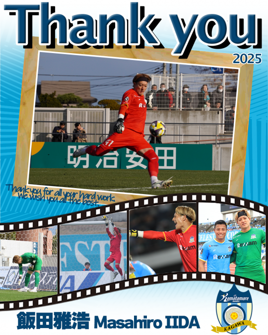 このたび、東京ヴェルディより期限付移籍にて加入していた飯田雅浩 選手の移籍期間が2025シーズンをもって終了となりましたのでお知らせいたします。