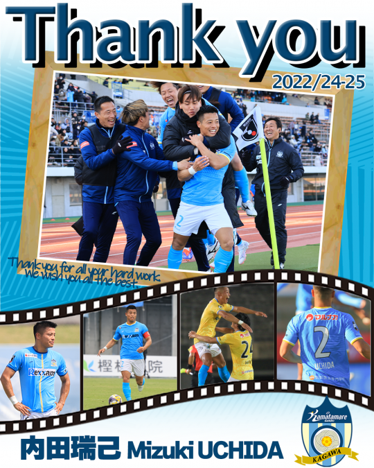 このたび、FC町田ゼルビアより期限付移籍にて加入していた内田瑞己 選手の移籍期間が2025シーズンをもって終了となりましたのでお知らせいたします。