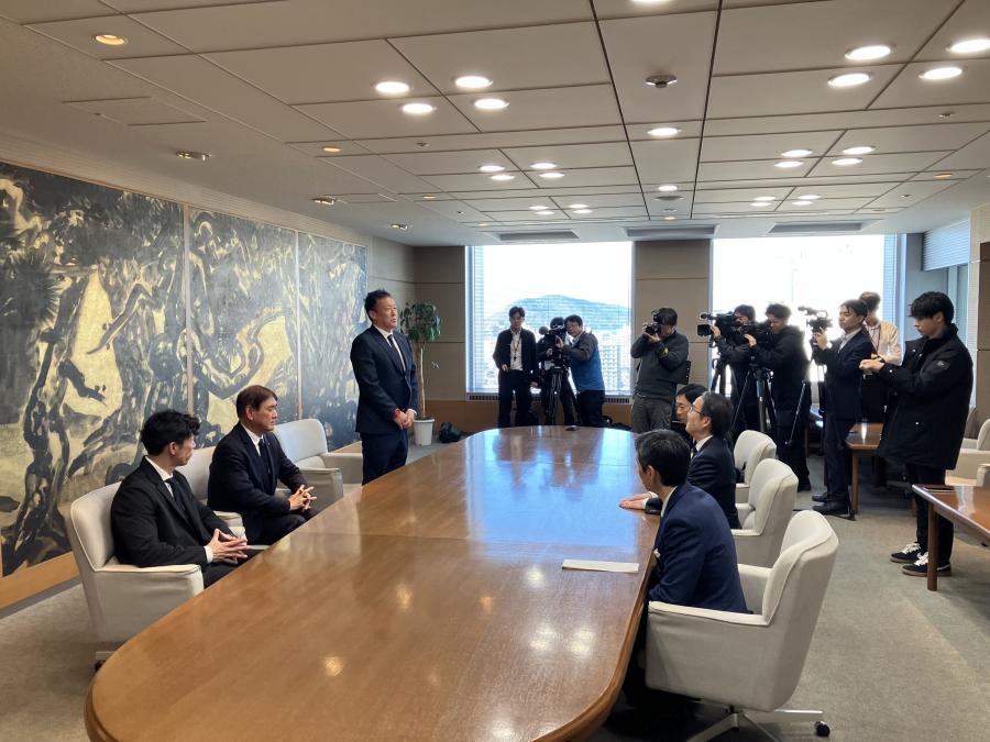 1月7日(水)に、カマタマーレ讃岐 代表取締役社長 増田勝、トップチーム監督 大嶽直人、強化部長兼地域連携リーダー 竹内彬が、香川県 池田豊人知事を表敬訪問いたしましたので、ご報告いたします。