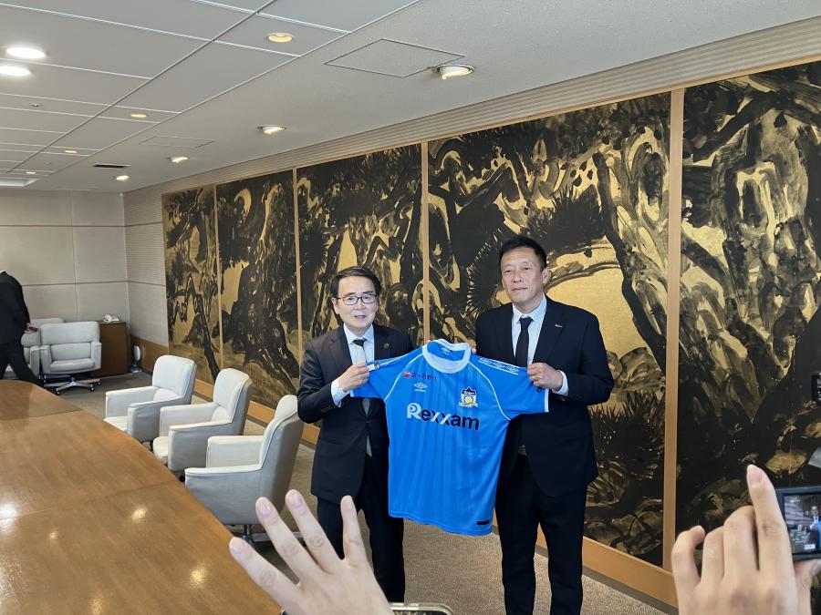 最後に、明治安田J2・J3百年構想リーグのユニフォームを池田知事に贈呈させていただきました。