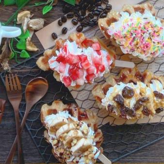 クロッフル(500円~):サクサク・モッチリ食感の美味しいクロワッサンワッフルです。是非ご賞味ください。