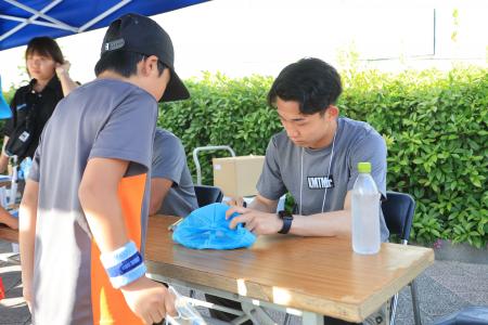 ウォーミングアップ前に選手とハイタッチ!選手を送り出そう!