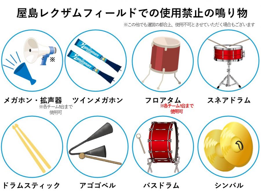 鳴り物のスタジアム内での使用を確認した場合、係員がお預かりいたします。