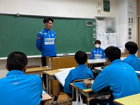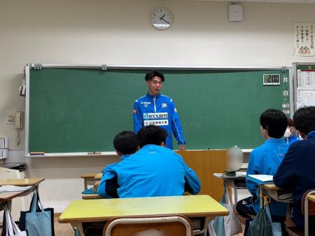 2月27日(金)に善通寺市立善通寺西中学校にてキャリア学習にお招きいただき、トップチームから後藤優介選手・岡英輝選手が訪問し講和を行いましたのでご報告いたします。