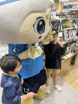 うどんをモチーフにしたマスコットとして、たくさんのお客様と触れ合いながら、ホームゲームの告知も行いました。