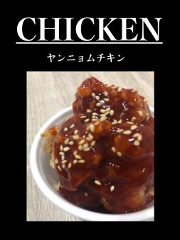 ヤンニョムチキン(700円) : 甘辛いタレを塗った韓国の唐揚げ。やみつきになります。