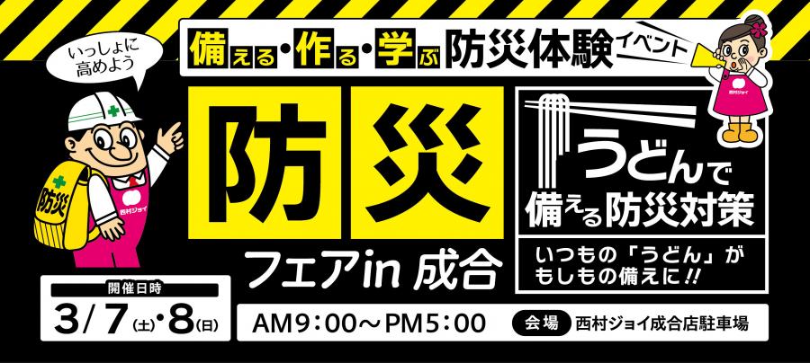 3月7日(土)・8日(日)に西村ジョイ成合店にて行われます、「防災フェアin成合」にカマタマーレ讃岐の選手が参加することとなりましたのでお知らせします。
