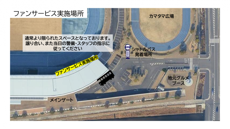 場所の都合上、アウェイの選手バスの入り待ちは禁止とさせていただきます。