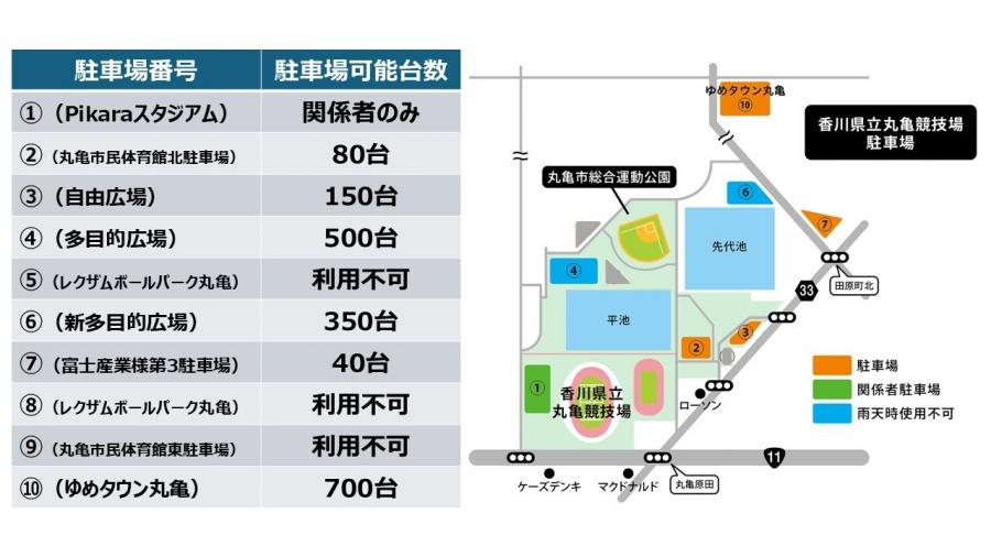 ・香川県立丸亀競技場まで徒歩20分ほどです。お早めのご来場にご協力ください。