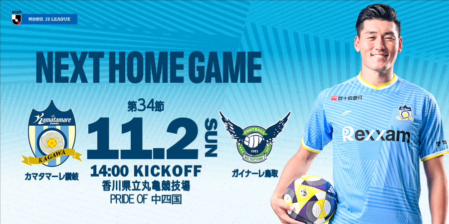 11月2日(日) 14:00KICKOFF 2025明治安田J3リーグ第34節 ガイナーレ鳥取戦 のチケット販売を開始いたしましたので、下記の通りお知らせいたします。