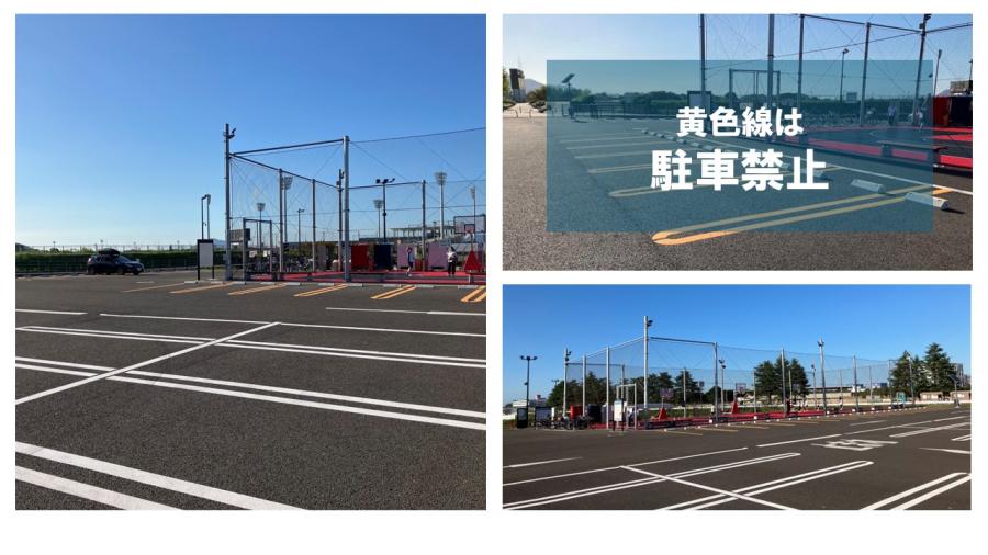 ※下記写真の駐車エリア(黄色枠内)にはカマタマーレ讃岐の来場者さまは駐車できませんのでご注意ください。