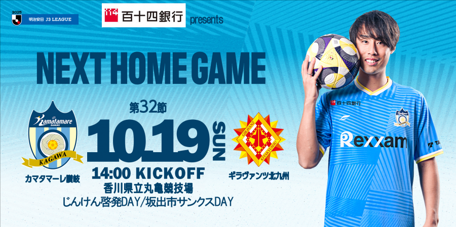 10月19日(日) 14:00KICKOFF 百十四銀行presents2025明治安田J3リーグ第32節ギラヴァンツ北九州 戦 じんけん啓発DAY/坂出市サンクスDAY のイベント情報をお知らせいたします。