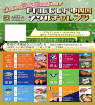 「Club J.LEAGUE」アプリにて会場の限定QRコードを読み取り、キャンペーンメダルを取得いただいた人の中から、メダルの取得数に応じて6県・7クラブからの豪華賞品(関係各県の特産品)が抽選で当たります。
