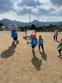 さぬぴーは人気者。子どもたちと楽しくボールを追いかけました。