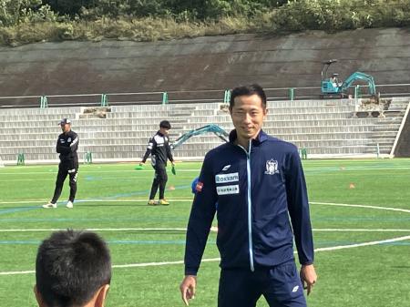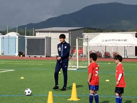 スクールコーチから「練習メニューを1つ考えてきてほしい」とお願いをすると「全部考えます!」と井林選手。サッカー教室を主体となって進めてくれました。