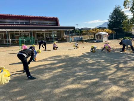 寒さに負けない元気な4歳5歳の33人の園児の皆さんと一緒に楽しくボールで遊びました。