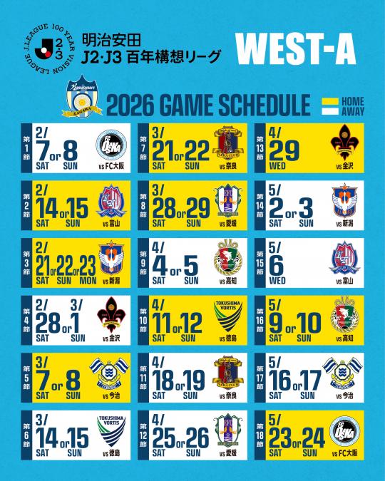 明治安田J2・J3百年構想リーグの対戦カードが決定しましたのでお知らせします。
