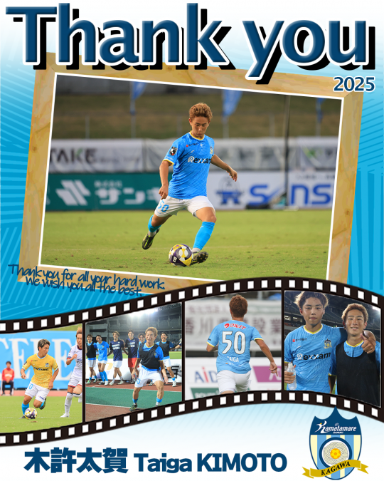 このたび、大分トリニータより育成型期限付移籍にて加入していた木許太賀 選手の移籍期間が2025シーズンをもって終了となりましたのでお知らせいたします。
