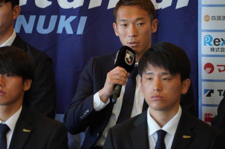 本当に選手と同じで、自分も成長して一緒になって戦いたいです。新天地なので、うどんのいっぱい美味しいところと、やっぱコシの強いものを食べたいなと思っているので、ぜひ教えてもらいたいなと。