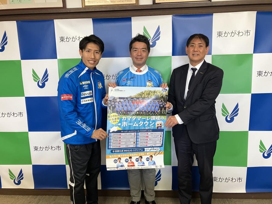 1月23日(金)に、トップチームMF60森川裕基選手とカマタマーレ讃岐 代表取締役社長 増田勝が、東かがわ市 上村一郎 市長を表敬訪問いたしましたので、ご報告いたします。