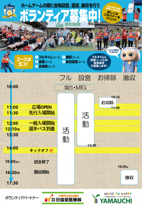 カマタマーレ讃岐のボランティアには5つのコースがございます。