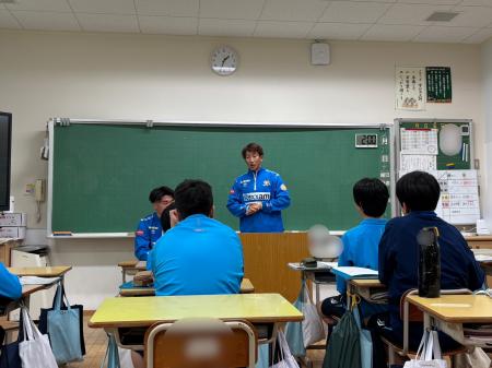 2月27日(金)に善通寺市立善通寺西中学校にてキャリア学習にお招きいただき、トップチームから後藤優介選手・岡英輝選手が訪問し講和を行いましたのでご報告いたします。