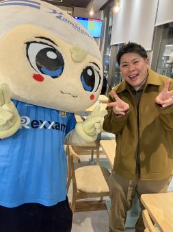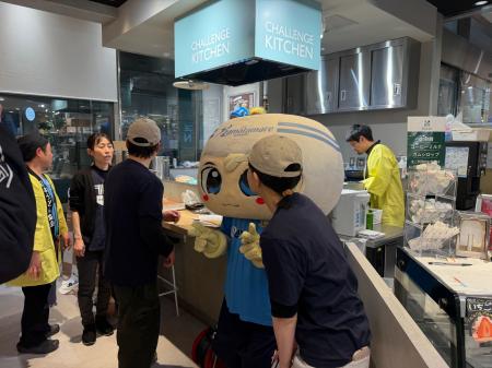 うどんをモチーフにしたマスコットとして、たくさんのお客様と触れ合いながら、ホームゲームの告知も行いました。