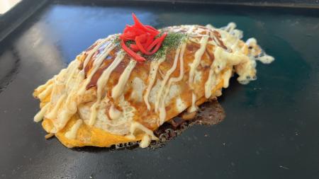 大三島ソースオムそば(700円) : しまなみ海道の鉄板ご当地グルメの大三島ソースオムそばは、玉子と焼きそばの相性にとことんこだわった一品です。