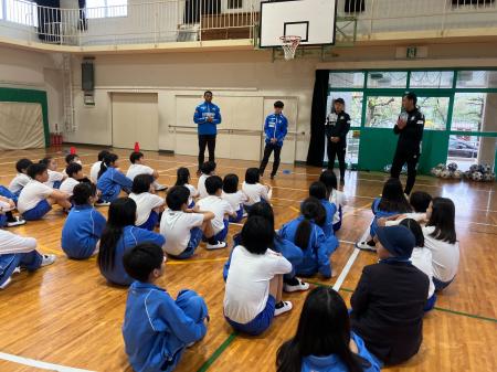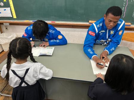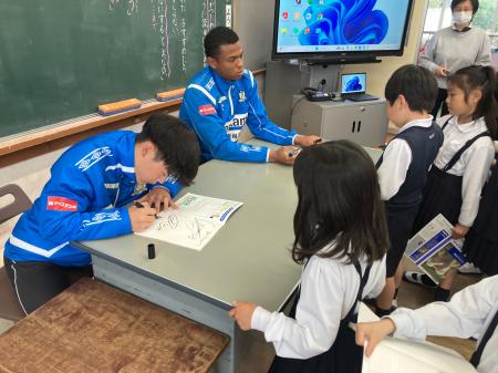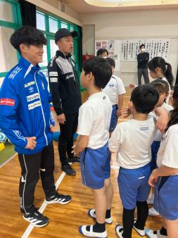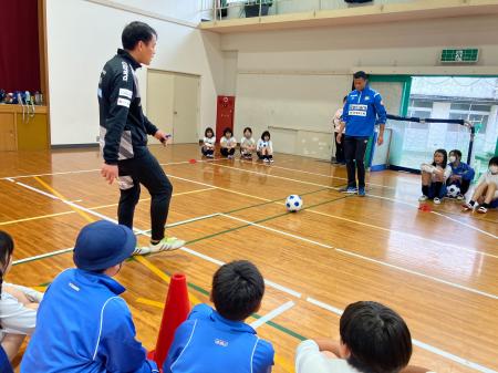 4月15日(水)に高松市立屋島東小学校をトップチームから高橋クリス選手と原野楼惟選手が訪問し、サッカー教室を行いましたのでご報告いたします。