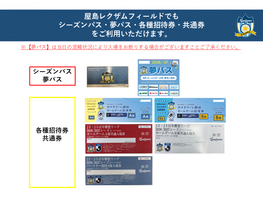 ・屋島レクザムフィールドでも各種招待券をご利用いただけます。