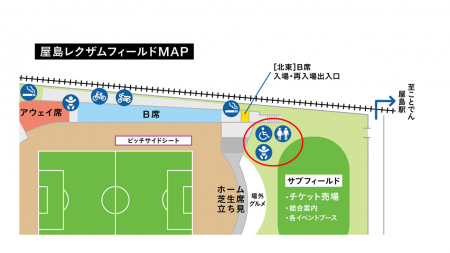 →試合前・試合中 : 場外北東トイレまたはトイレカーをご利用ください。